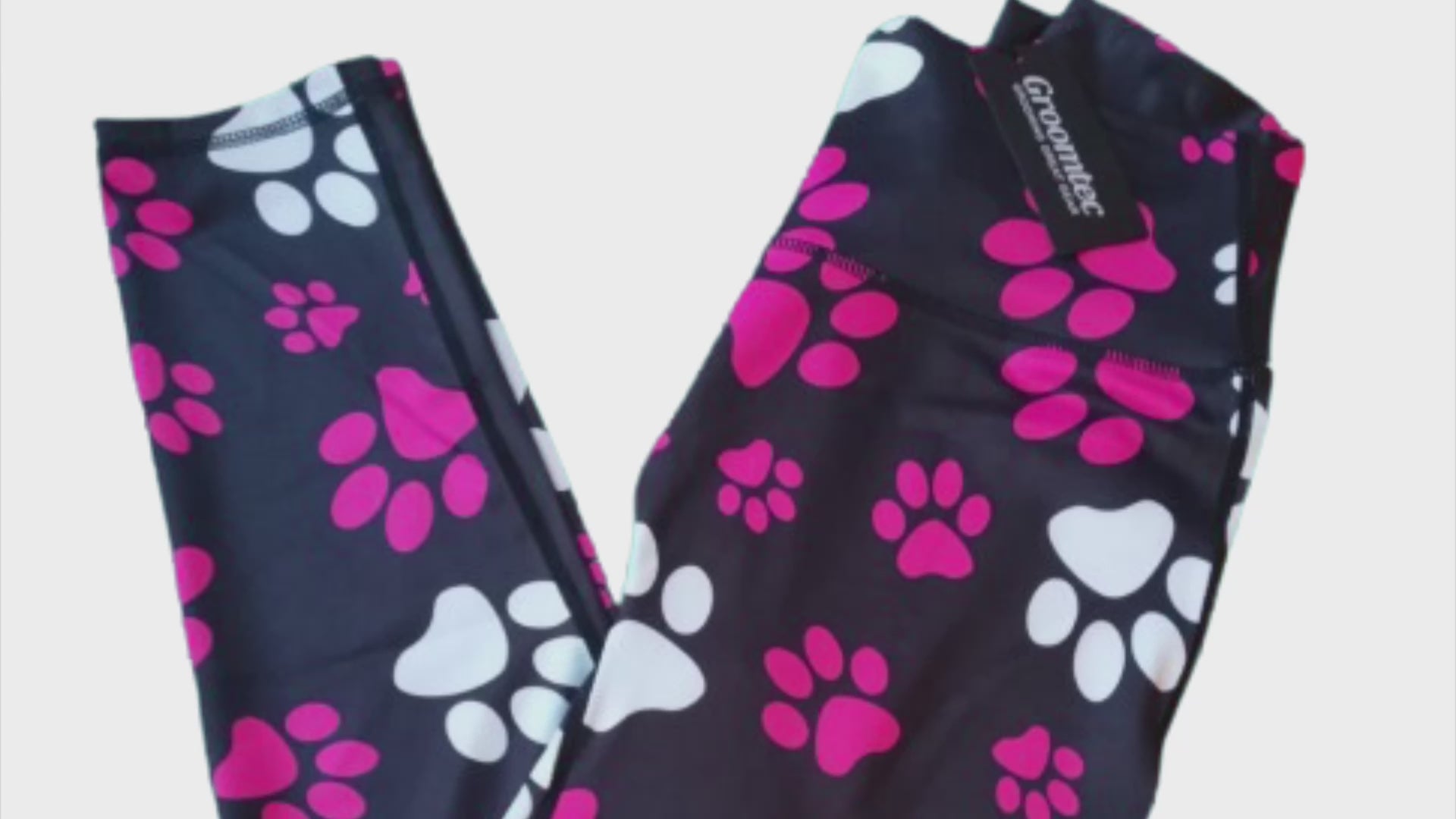 These hair resistant leggings are made for us with a durable blend of 25% spandex and 75% polyester for a comfortable and practical solution to your dog grooming wardrobe.